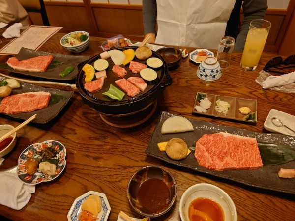 昼食は飛騨牛料理をいただきました。お肉はもちろん美味しく、脇役の薬味であるワサビのおいしさに驚きました。
